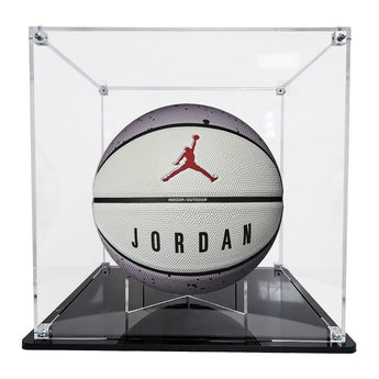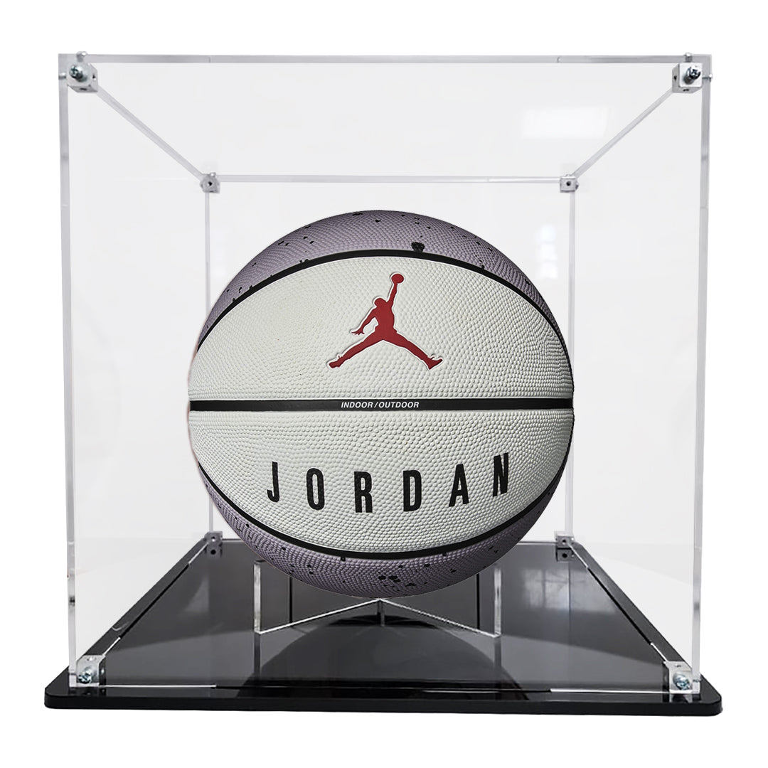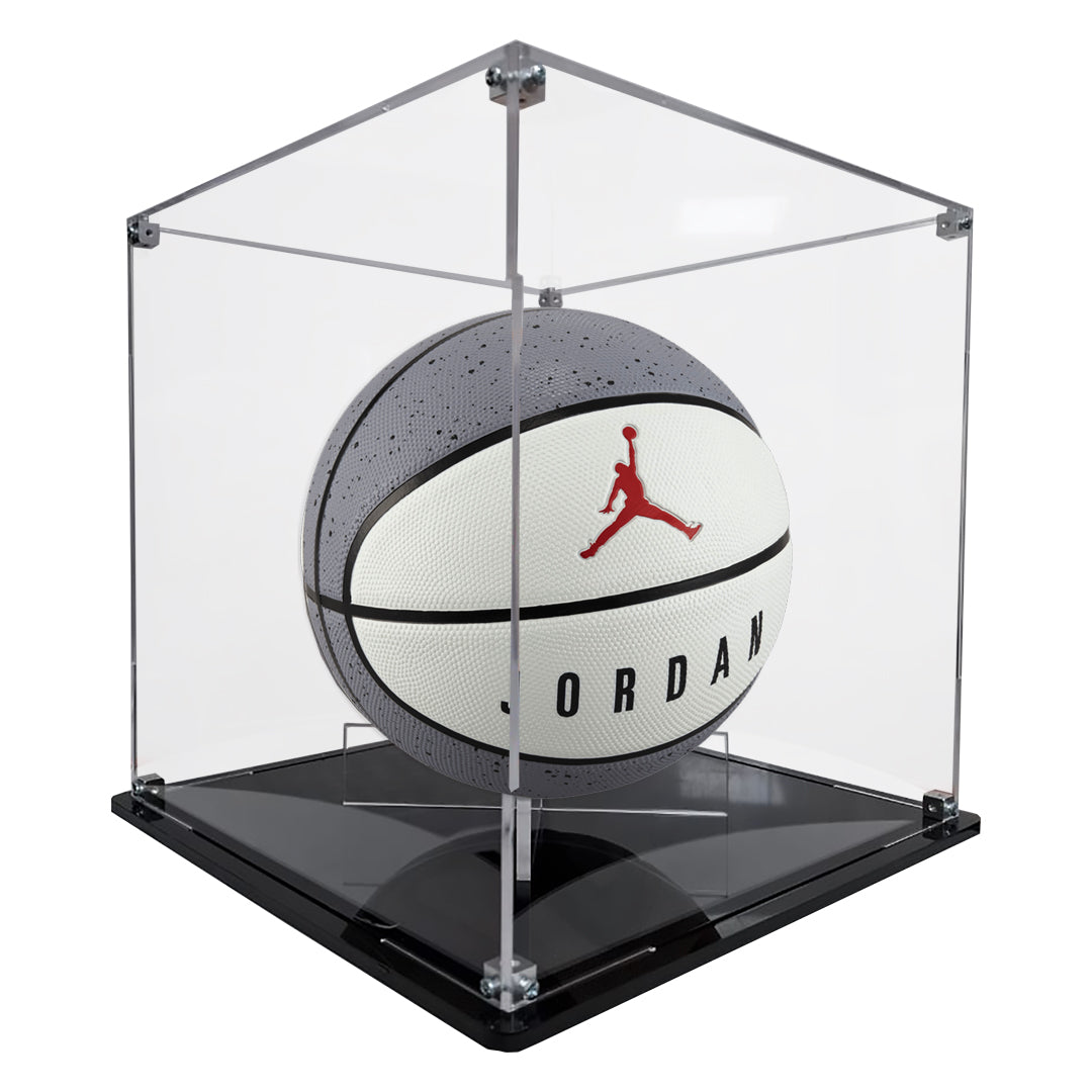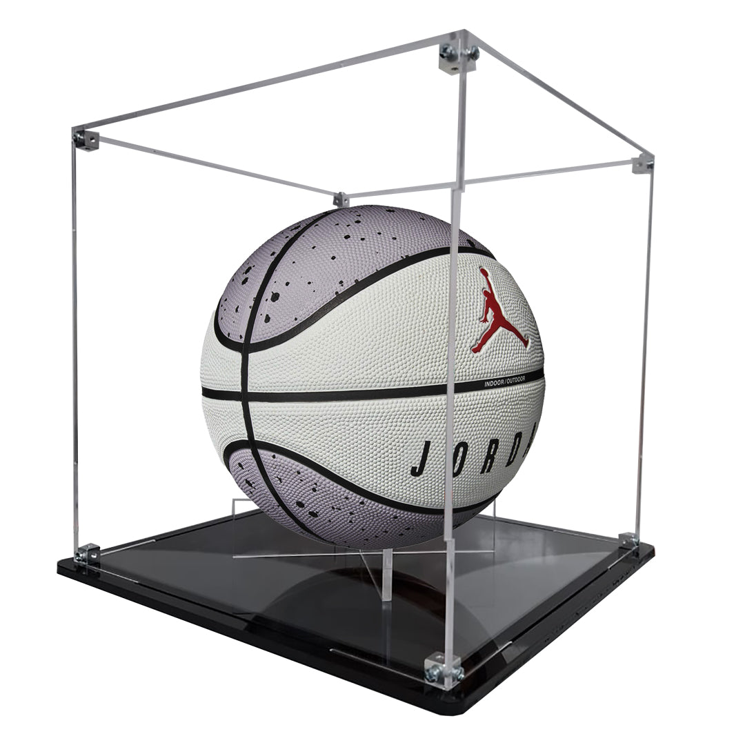 Vetro Exhibitors, pone a la venta Exhibidor armable de acrílico transparente de 3 mm con base plana de acrílico negro de 6 mm, ideal para exhibir tu balón de Basquetbol favorito (1:1 / profesionales).