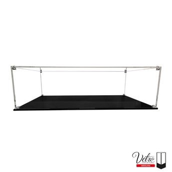 exhibidor o Vitrina de acrílico transparente y resistente con 5 mm. de espesor, diseñado para autos FERRARI DYTONA TECHNIC 42143 + Base negra de 6 mm. + Placa grabada en acrílico.