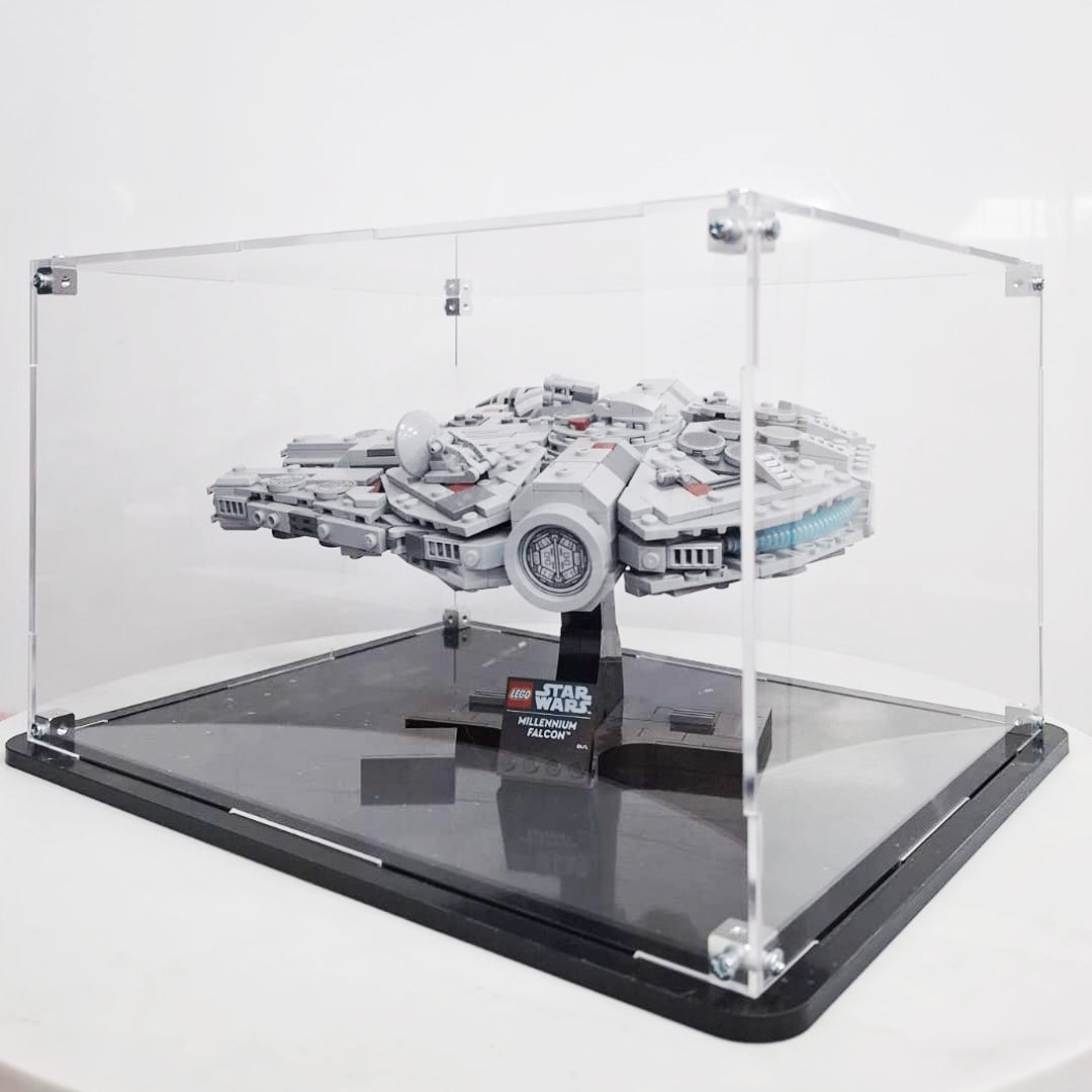 Vetro Exhibitors, pone a la venta Exhibidores armables de acrílico transparente de 3 mm con base plana de acrílico negro de 6 mm, ideal para exhibir set LEGO Star Wars Millenium Falcon 25th Aniversary (75375)