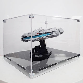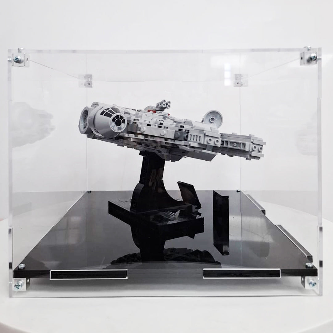 Vetro Exhibitors, pone a la venta Exhibidores armables de acrílico transparente de 3 mm con base plana de acrílico negro de 6 mm, ideal para exhibir set LEGO Star Wars Millenium Falcon 25th Aniversary (75375)